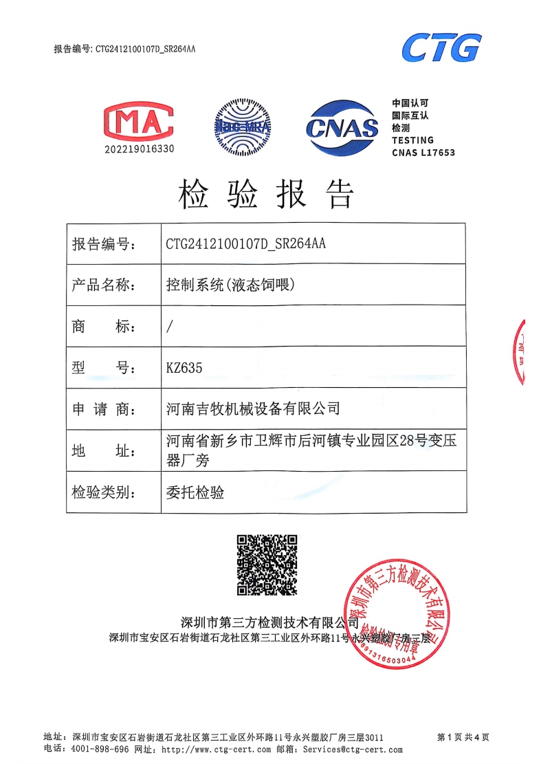 控制系統(tǒng)(液態(tài)飼喂)檢驗(yàn)報告