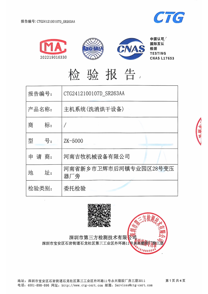 主機(jī)系統(tǒng)(洗消烘干設(shè)備)檢驗(yàn)報告